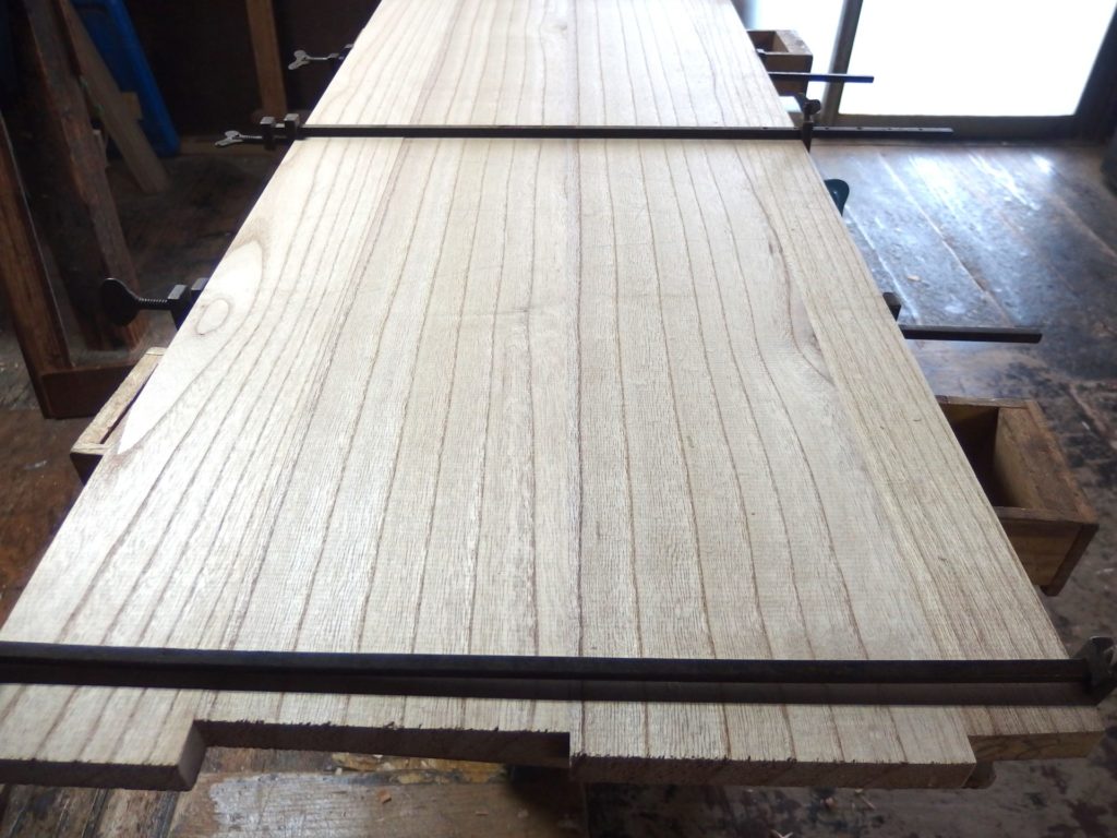 木目をそろえて一枚の板に見えるように、つなぎ合わせます。